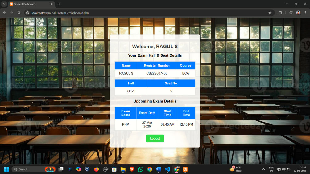 Exam Hall & Seating Arrangement System – PHP MySQL Project with Source Code